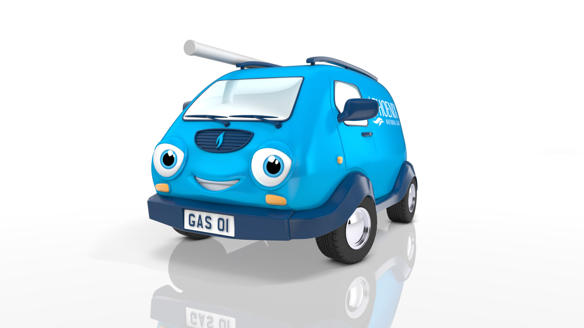 Working with ALT Animation in belfast we turned the iconic blue van of Phoneix Natural Gas into a friendly animated character.